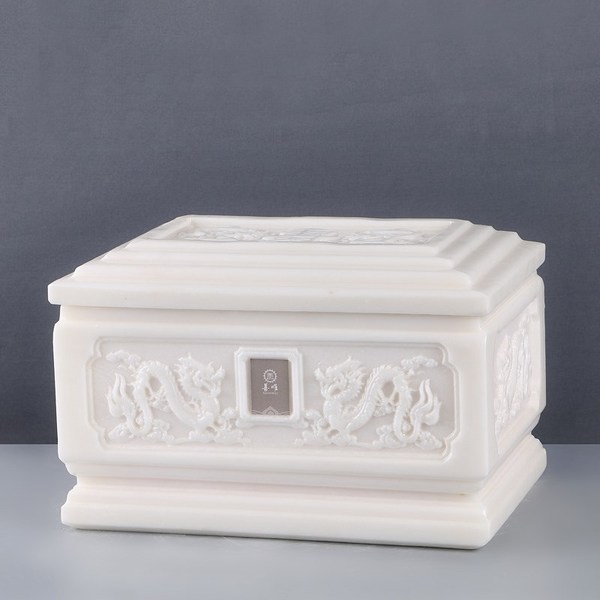 先说说玉石质骨灰盒,主要以汉白玉骨灰盒为主。玉石质骨灰盒有着多处优势,比如防腐防潮,不宜损坏,价格便宜等等。一般来说,玉石质骨灰盒的价格都在几百元上千元左右。